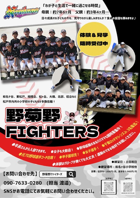 野菊野ファイターズはいつでも体験参加可能!